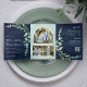 Convite Com Dobra Tripla Eucalyptus Photo Collage Código QR Marinho Casamen