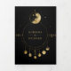 Convite Com Dobra Tripla Fases da Lua Negra Celestial Crescente Dourada