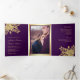 Convite Com Dobra Tripla Faux Gold Foil Deixa Casamento Floral Púrpura