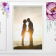 Convite Com Dobra Tripla Flores de aguarela roxa foto floral casamento