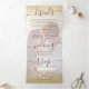 Chamada de três vezes de casamento com dourado amarelo-chic mbre white script ombre com detalhes, convite principal e o rsvp para seu convidado cortar e retornar. Adicione sua foto atrás. Apresentando uma ombre amarelo-chic dourada em um fundo branco simples com uma elegante e moderna letra de caligrafia. Com um grande dentro de fotos do casal