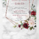 Convite Com Dobra Tripla Foto Geométrica Burgundy do Cobre Marble