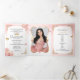 Convite Com Dobra Tripla Foto: Rosa claro Espanhola e Quinceanera Dourada