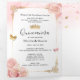 Crie os seus próprios convites únicos, elegantes triplos quinceanera sobre uma simples rosa claro de JY e modelo de ouro que é facilmente personalizada com fotos glamourosas de Mis Quince Anos. O design floral vermelho ilustrado por Raphaela Wilson apresenta uma textura de papel pergaminho branco, rosas de rosa claro e sotaques de ouro metálicos falsos nos rosas, a princesa coroa tiara, vestidos de filigre/borda de gown e confete de borboleta brilhando. O texto em inglês é fácil de traduzir para o espanhol com o layout tradicional do convite mexicano. Há muito espaço nos 6 painéis de cartão dobrados, o que lhe permitirá ajustado de todos os seus detalhes importantes (por exemplo, informações do rsvp/programa, 3 fotos, obrigado de seu texto (para madrinas, padrinos, chambelanes, tribunal de honra etc.).. Estes elegantes convites triplos com flores dão a você a flexibilidade de design para escolher diferentes cores de fundo e até mudar a tipografia do roteiro de caligrafia e fontes modernas para outro estilo de sua escolha. Quer seja uma quinceanera cor-de-rosa e dourada que vocês estão comemorando, uma doce festa de aniversário 16 para sua filha, um casamento da princesa Cinderela, um chá de panela escamoteado, ou mesmo um chá de fraldas da princesa de conto de fadas, estes convites para a quinceanera da rosa claro são adequados para aqueles que, uma vez por vez, são ocasiões especiais. Categoria: licores cor-de-água rosa quinceanera com fotografias; tema elegante da borboleta quinceanera; e convites de aniversário da quinceañera com fotos. Dourado e escamoteado: rosa claro, pincel, rosa pastel, ouro amarelo champanhe, preto e branco.