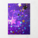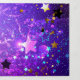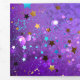Fundo de faturas violetas com estrelas douradas e azuis. Fundo com estrelas.