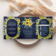 Convite Com Dobra Tripla Girassóis e Eucalyptus 3 em 1 Marinho Casamento Az