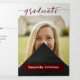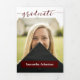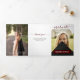 Um script elegante anuncia seu graduado sobre sua foto de sênior favorita na frente. Bloco para o nome na frente e todos os detalhes da cerimônia dentro, junto com mais duas fotos. Espaço na parte de trás para uma mensagem de agradecimento aos amigos e familiares. Design disponível nas cores escolares vermelho, laranja, roxo, verde, azul, laranja queimado, grená e preto. Produtos combinando disponíveis.