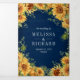 Convite Com Dobra Tripla Marinho Azul Girassóis Mason Jar Código QR Casamen