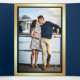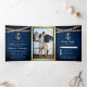 Convite Com Dobra Tripla Marinho Azul Madeira Iluminação Dourada Marítima N