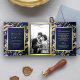 Convide seus convidados com este elegante convite de casamento, com belos design de mármore azul marinho com falsos bordos de folha de ouro. Basta adicionar os detalhes do seu evento neste modelo fácil de usar e adorar este cartão com as suas fotografias favoritas para o tornar um convite único.
