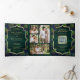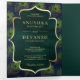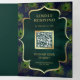 Convite Com Dobra Tripla Marinho Azul Penas de Pavão Verde Código QR Casame