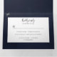 Folhas de Eucalyptus com aquarela, textura azul marinho escura, um convite de casamento moderno, tudo em uma combinação. O cartão de resposta é um recorte de cartão postal, com opções de refeições e com o endereço de retorno pré-impresso. Uma solução moderna, tudo em uma solução, para evitar que o cartão rsvp fechado acabe acidentalmente sob o frigorífico. O convite também inclui informações detalhadas sobre o casamento.