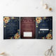 Convite Com Dobra Tripla Marinho de girassol Blue Burgundy Casamento Floral