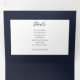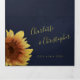 Girassol de aquarela em uma cor d'água, com textura azul marinho escura e fundo texturizado um convite de casamento moderno, tudo em uma combinação. O cartão de resposta é um recorte de cartão postal, com opções de refeições e com o endereço de retorno pré-impresso. Uma solução moderna, tudo em uma solução, para evitar que o cartão rsvp fechado acabe acidentalmente sob o frigorífico. O convite também inclui informações detalhadas sobre o casamento.