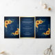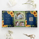 Convite Com Dobra Tripla Marinho Madeira Girassóis Arco Fotográfico Código