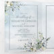 Convite Com Dobra Tripla Mola de Aquarela Azul Dusty Botânica