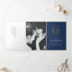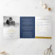 Convite Com Dobra Tripla Opção de casamento RSVP de ouro azul-escuro monogr