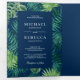 Convite Com Dobra Tripla Palma Azul Verde e Marinho Deixa Casamento Tropica