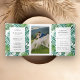 Amaze seus hóspedes com esse tema tropical elegante todos em um convite de casamento com tipografia moderna sobre folhas verdes e folhagem. Basta adicionar os detalhes do seu evento neste modelo fácil de usar e enfeitar este cartão com a sua foto favorita para torná-lo um convite único.