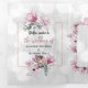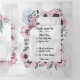Este é um belo e encantador convite para casamento triplo para que a resposta possa ser cortada e enviada de volta. Magnólia Rosa-d-água floresce com aves em cada quadrado sentados nos galhos.