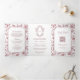 Convite Com Dobra Tripla Rosa Chinoiserie Crest QR Code Casamento