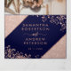 Novo convite Rosa dourado falso digitação confetti marinho casamento azul, Rosa Dourado tipografia de blocos coloridos em azul marinho personalizável e narrativas geométricas de ouro falso rosa, perfeito para casamento elegante e luxuoso, adicione sua foto, detalhes de casamento e rsvp.