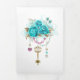 Convite Com Dobra Tripla Rosas Turquesas com Chaves