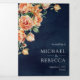 Convite Com Dobra Tripla Rustic Earthy Floral Código QR Casamento Marinho