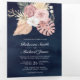 Incêndio aos seus convidados com este elegante convite para casamento, com lindas flores cor-de-rosa poeirentas e folhas de palma secas, com cartão RSVP online. Basta adicionar os detalhes do seu evento neste modelo fácil de usar e adorar este cartão com as suas fotografias favoritas para o tornar um convite personalizado único.