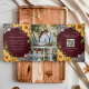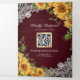 Convite Com Dobra Tripla Rustic Sunflower Burgundy Wood Código QR Casamento