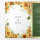 Incêndio aos seus convidados com este elegante tudo em um convite de casamento com lindos girassóis e tipografia moderna com placa RSVP online. Basta adicionar os detalhes do seu evento neste modelo fácil de usar e adorar este cartão com as suas fotografias favoritas para o tornar um convite único.