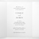 Elegant tri-fold all in one wedding invitation featuring a simple design with a modern sans serif font and an elegant script font. Attached RSVP card has meal choices for your guests.