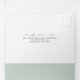 Um design simples e minimalista com ilustrações de ramificações de eucalipto em cada painel. Tudo isso em um único convite economizaria dinheiro, não precisaria incluir envelopes RSVP, seus hóspedes cortarão o último painel e enviá-lo-ão de volta para você como cartão-postal.