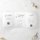 Convite Com Dobra Tripla Simples script elegante Casamento branco RSVP QR