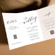 Simples barato elegante de orçamento branco e preto, tudo em um modelo de convite de casamento triplo com código QR digitalizável para rsvp online e detalhes. ++++++++++++ Fácil de personalizar em ambos os lados! O convite é adequado para casamentos clássicos formais contemporâneos.
