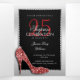 Bonito convite de aniversário surpresa para 25 de Foto, prateado e preto, com código QR para respostas/informações rápidas e fáceis. Um bonito convite para comemorar vinte e cinco anos. Uma armação glamourosa de diamante prateado em um fundo preto e prateado inventa seus detalhes do evento. Com imagens adicionadas de cordas na moda glitzy e um calçado de joias de rochonete estilete a alto salto. Todo texto é totalmente personalizável para atender às suas necessidades. Se você quiser ajuda com alguma coisa, por favor, entre em contato comigo através da minha loja e eu ficarei muito feliz em ajudá-lo. Seu código QR será gerado automaticamente para atualizar o código de exemplo no design, quando você simplesmente alterar o URL de exemplo no modelo com o URL do seu próprio site de eventos. Encomenda cada convite separadamente se desejar utilizar esta opção de personalização de cada convite com o nome e o endereço de seus destinatários para salvá-los. DICA: preencha primeiro os restantes detalhes do convite e, em seguida, coloque o nome do primeiro destinatário e os detalhes do endereço aqui. Depois de adicionar seu primeiro convite ao carrinho, você pode clicar na imagem dele no carrinho, que o levará de volta ao produto e, em seguida, simplesmente adicionará o nome e o endereço do próximo destinatário. Não vai substituir os anteriores já no seu carrinho. OBSERVE que você pode excluir este texto se preferir fazer o pedido em massa e adicionar o nome do destinatário e os detalhes do endereço no recebimento.