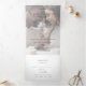 Este convite triplo de casamento com fotos desbotadas pela tipografia chic é perfeito para um casamento moderno. A simples design apresenta uma tipografia negra minimalista clássica com um toque rústico. Personalize com duas fotos de noivado. Sua suíte de casamento inteira em um! Este convite dobrado inclui seu convite de casamento, detalhes, uma foto de noivado, e um cartão de RSVP endereçado a si próprio que seus convidados cortaram e enviaram para você. Personalize o cobrir frontal com seus nomes e data do casamento.