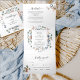 Escreva todos os detalhes para o seu casamento com isto tudo num único convite floral elegante, sem necessidade de cartões de inserção extras ou Rsvp! Seção interna do meio mostrando os detalhes do convite, enquanto na seção superior você pode adicionar qualquer recepção, alojamento, transporte, presentes, detalhes do site que quiser. Os convidados abaixo podem facilmente cortar o cartão postal RSVP e colocar no correio! Edite informações em caixas de texto ou selecione personalizar para fazer ajustes na tela de edição. Excelente e elegante coloração aquosa pintou detalhes florais em todas as seções com flores e folhagem em cinzas de madeiras, creme de manteiga, azul empoeirado, pincel, pêssego, rosa poeirento e tons verdes. Folhagem rosa pálida e Eucalyptus verde. Parte da nossa coleção de "Casamentos Felizes e Eventos". Também disponível com fotografia do casal no verso.