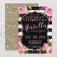 Este convite de listras pretas e brancas florais é completamente personalizável para qualquer evento. Este convite está atualmente configurado para ser um convite de aniversário elegante com listras pretas e brancas, detalhes florais rosa e detalhes de brilho dourado falso. Certifique-se de selecionar personalizar ainda mais se desejar usar isso para outro evento para acessar o modelo completamente personalizável. Este convite é popular para aniversários, chá de noiva, despedidas de solteira e muito mais!