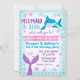 Este convite comum do aniversário é apropriado para um irmão e uma irmã ou dois amigos. As características de design um tubarão e uma sereia atam em um design na maior parte azul e roxo. O mesmo design está igualmente disponível com a foto na loja. Este convite comum do aniversário da sereia e do tubarão das crianças está pronto para ser personalizado.