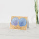 Pintura de uma concha do mar azul e uma roxa na areia, com Salve a data, é impressa em cartões de notas personalizados. Há um espaço reservado para o seu texto personalizado dentro.