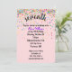 Confetti colorido para convites de festa de aniversário 7 em fundo rosa-claro. A cor de fundo pode ser alterada. Todo texto é editável.