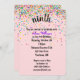 Confete colorido para a 9ª festa de aniversário convidada sobre fundo rosa-claro. A cor de fundo pode ser alterada. Todo texto é editável.