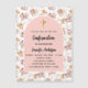Um quadro de arco sobre um padrão de grama pampas e flores cor-de-rosa e uma cruz ouro. Personalize e adicione um nome e detalhes.