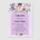 Um fundo violeta, lavanda, de cor aquosa. Decorados com flores violetas e púrpuras, de cor aquosa, e com uma cruz ouro. Personalize e adicione seu nome e detalhes de recepção.