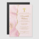 O rosa elegante e o ouro enfeitam este bonito convite magnético do partido de confirmação personalizado para a cerimônia cristã de uma menina. Personalize com um nome e detalhes da cerimônia sob a bela cruz para um convite de íman do partido religioso chinês.