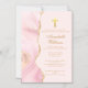 Convite Confirmação Elegante Partido de Agato Dourado Rosa