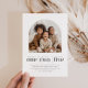 Um moderno convite conjunto de Aniversário que apresenta a sua própria fotografia em forma de arco e 3 seções para o nome e a idade de cada criança.