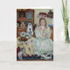 Uma menina encantadora no chá com seus amigos peludos.