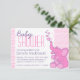 Convite para chás de fraldas bonitos, com elefantes bonitos soprando bolhas em forma de coração. Bonito convite de chá de menina rosa com um elefante sortudo. Personalize com seus detalhes de chá de fraldas. Ilustrada e desenhada exclusivamente por Sarah Trett.